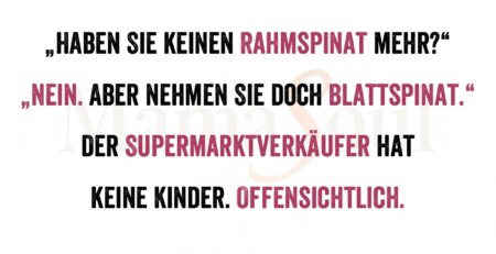 „Haben Sie keinen Rahmspinat mehr?“ „Nein. Aber nehmen Sie doch Blattspinat.“ Der Supermarktverkäufer hat keine Kinder. Offensichtlich. read more