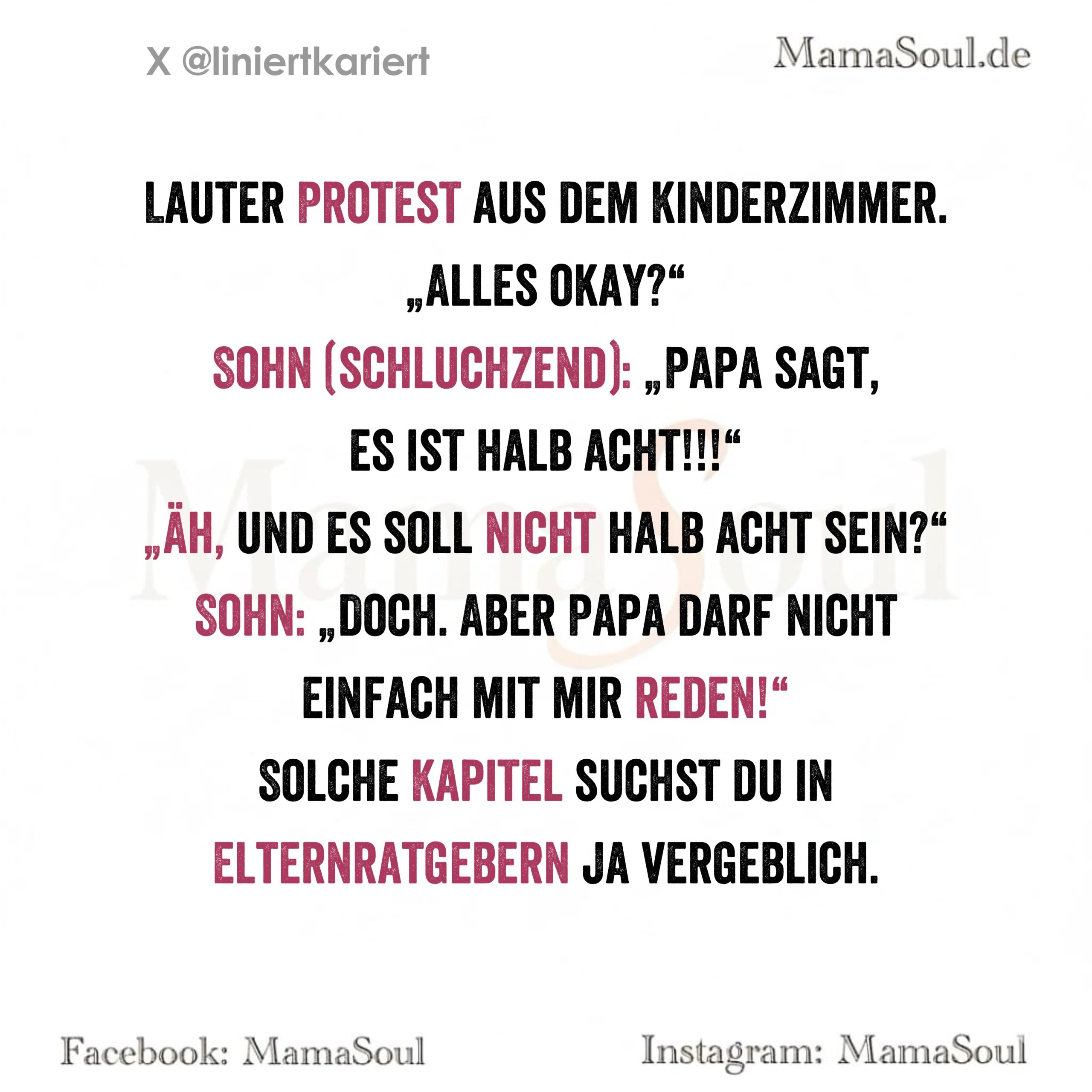 Sohn (schluchzend): „Papa sagt, es ist halb acht!!!“