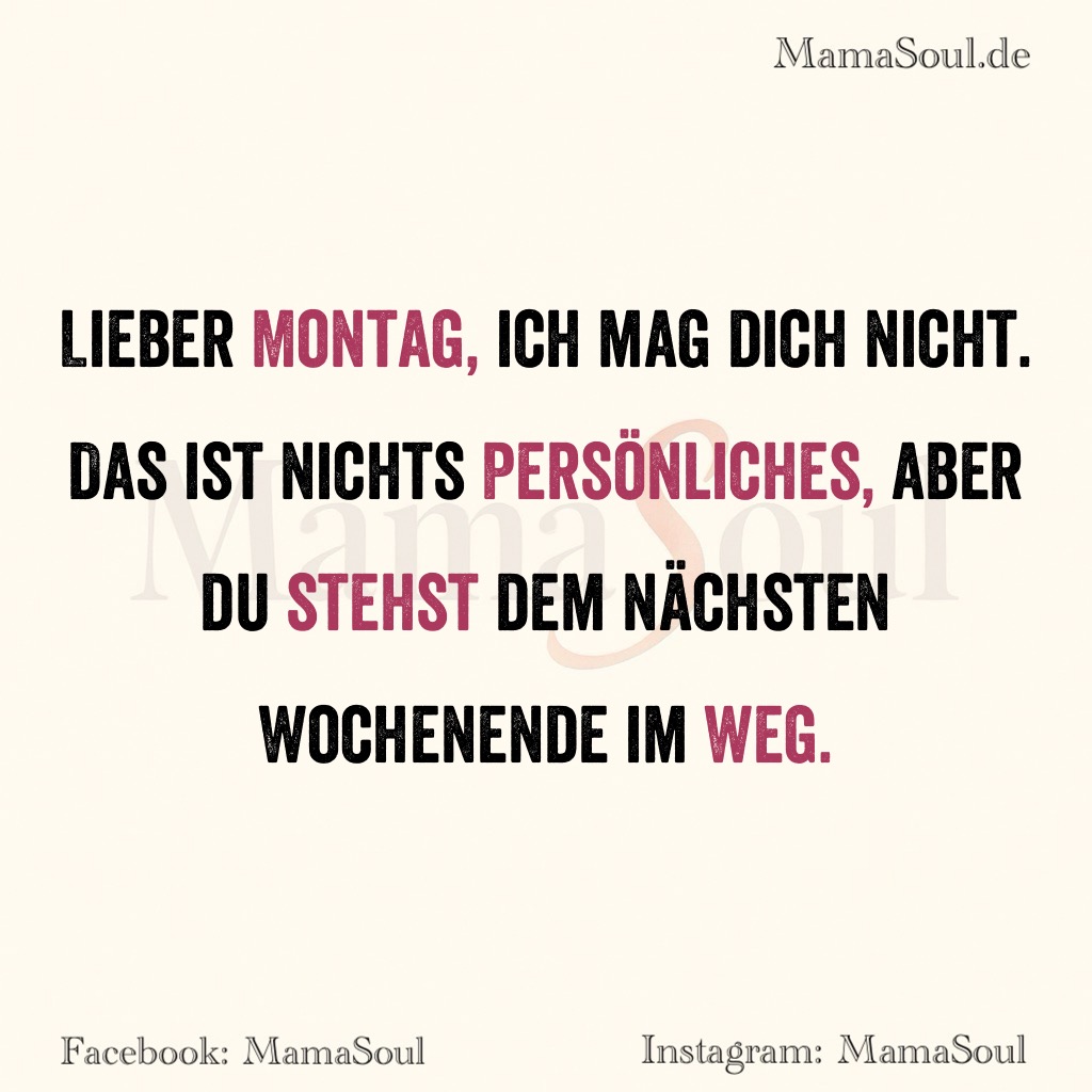 Lieber Montag, ich mag dich nicht. Das ist nichts Persönliches, aber du stehst dem nächsten Wochenende im Weg.