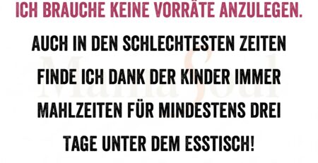 Ich brauche keine Vorräte anzulegen. Auch in den schlechtesten Zeiten finde ich dank der Kinder immer Mahlzeiten für mindestens drei Tage... read more