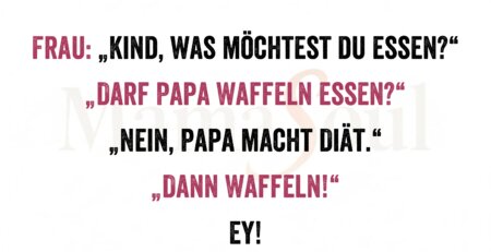 Frau: „Kind, was möchtest du essen?“ „Darf Papa Waffeln essen?“ „Nein, Papa macht Diät.“ „Dann Waffeln!“ Ey! read more