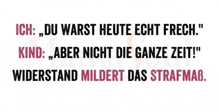 Ich: „Du warst heute echt frech." Kind: „Aber nicht die ganze Zeit!" Widerstand mildert das Strafmaß. read more