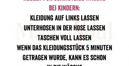 Regeln für schmutzige Wäsche bei Kindern: Kleidung auf links lassen Unterhosen in der Hose lassen Taschen voll lassen Wenn das Kleidungsstück 5 Minuten getragen... read more