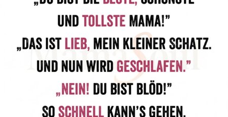 „Du bist die beste, schönste und tollste Mama!” „Das ist lieb, mein kleiner Schatz. Und nun wird geschlafen.” „Nein! Du bist blöd!” So... read more