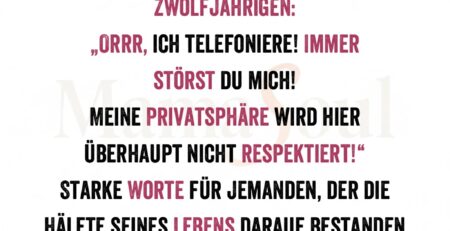 Ich klopfe vorsichtig an die Tür des Zwölfjährigen: „Orrr, ich telefoniere! Immer störst du mich! Meine Privatsphäre wird hier überhaupt nicht respektiert!“ Starke... read more