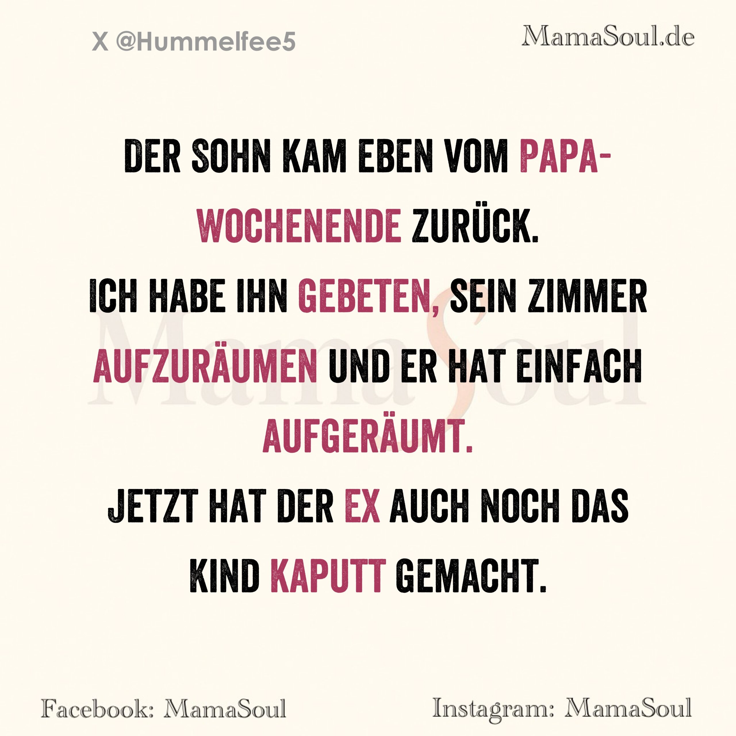 Der Sohn kam eben vom Papa-Wochenende zurück.