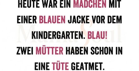 Heute war ein Mädchen mit einer blauen Jacke vor dem Kindergarten. Blau! Zwei Mütter haben schon in eine Tüte geatmet. read more