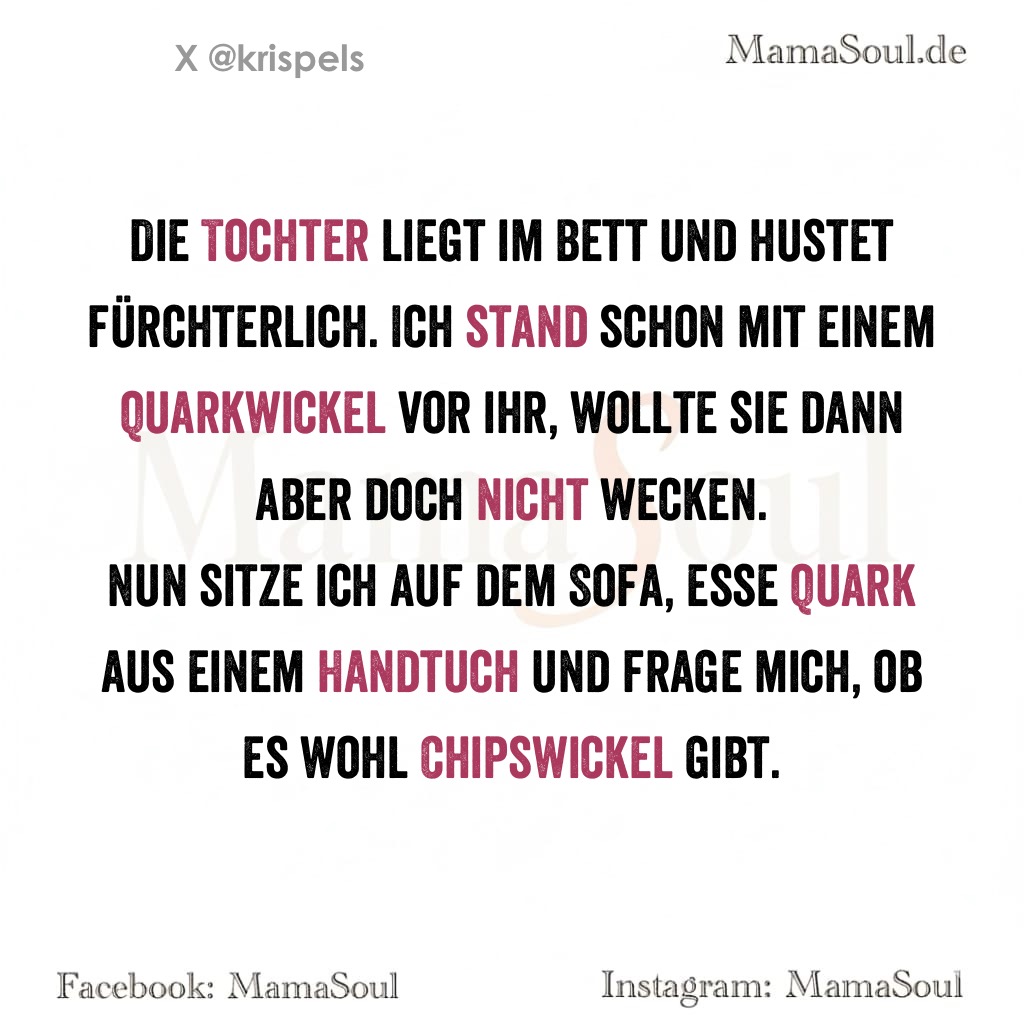 Die Tochter liegt im Bett und hustet fürchterlich. Ich stand schon mit einem Quarkwickel vor ihr, wollte sie dann aber doch nicht wecken.