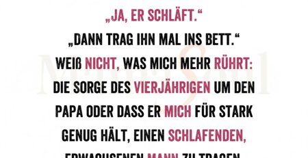 „Mama, schläft Papa?“ „Ja, er schläft.“ „Dann trag ihn mal ins Bett.“ Weiß nicht, was mich mehr rührt: die Sorge des Vierjährigen um den... read more