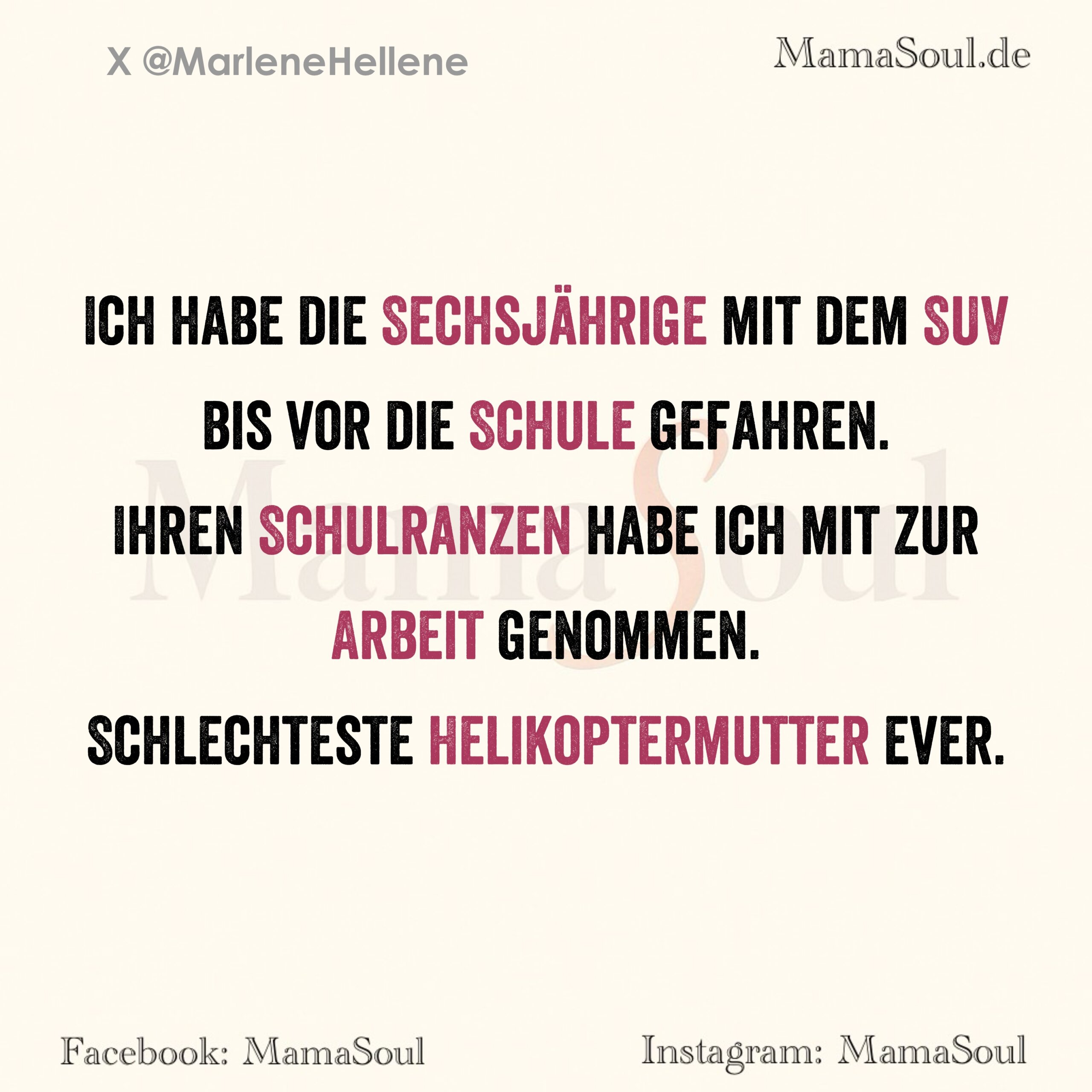 Ich habe die Sechsjährige mit dem SUV bis vor die Schule gefahren.