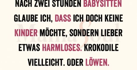 Nach zwei Stunden Babysitten glaube ich, dass ich doch keine Kinder möchte, sondern lieber etwas Harmloses. Krokodile vielleicht. Oder Löwen. read more