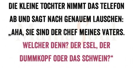Die kleine Tochter nimmt das Telefon ab und sagt nach genauem Lauschen: „Aha, Sie sind der Chef meines Vaters. Welcher denn?... read more