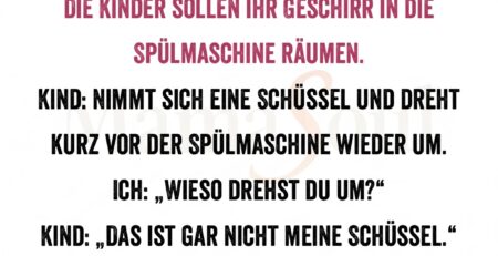 Die Kinder sollen ihr Geschirr in die Spülmaschine räumen. Kind: Nimmt sich eine Schüssel und dreht kurz vor der Spülmaschine wieder... read more