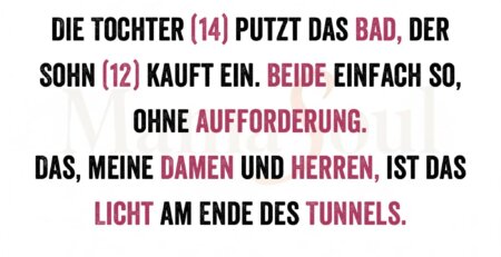 Die Tochter (14) putzt das Bad, der Sohn (12) kauft ein. Beide einfach so, ohne Aufforderung. Das, meine Damen und Herren,... read more