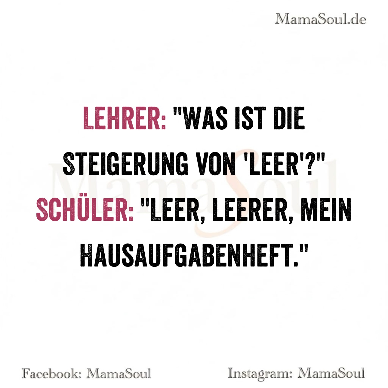 Lehrer: „Was ist die Steigerung von ‚leer‘?“ Schüler: „Leer, leerer, mein Hausaufgabenheft.“