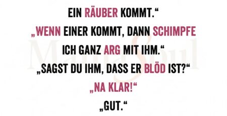 „Mama, ich habe Angst, dass ein Räuber kommt.“ „Wenn einer kommt, dann schimpfe ich ganz arg mit ihm.“ „Sagst du ihm, dass... read more