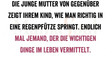 Die junge Mutter von gegenüber zeigt ihrem Kind, wie man richtig in eine Regenpfütze springt. Endlich mal jemand, der die... read more