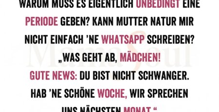 Warum muss es eigentlich unbedingt eine Periode geben? Kann Mutter Natur mir nicht einfach ’ne WhatsApp schreiben? „Was geht ab, Mädchen! Gute News:... read more
