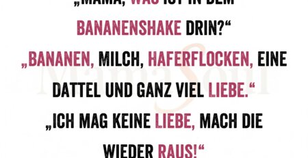 „Mama, was ist in dem Bananenshake drin?“ „Bananen, Milch, Haferflocken, eine Dattel und ganz viel Liebe.“ „Ich mag keine Liebe, mach die... read more