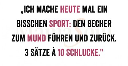 „Ich mache heute mal ein bisschen Sport: Den Becher zum Mund führen und zurück. 3 Sätze à 10 Schlucke." read more