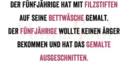 Der Fünfjährige hat mit Filzstiften auf seine Bettwäsche gemalt. Der Fünfjährige wollte keinen Ärger bekommen und hat das Gemalte ausgeschnitten. read more