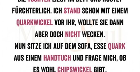 Die Tochter liegt im Bett und hustet fürchterlich. Ich stand schon mit einem Quarkwickel vor ihr, wollte sie dann aber... read more
