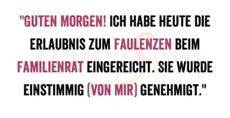 "Guten Morgen! Ich habe heute die Erlaubnis zum Faulenzen beim Familienrat eingereicht. Sie wurde einstimmig (von mir) genehmigt." read more